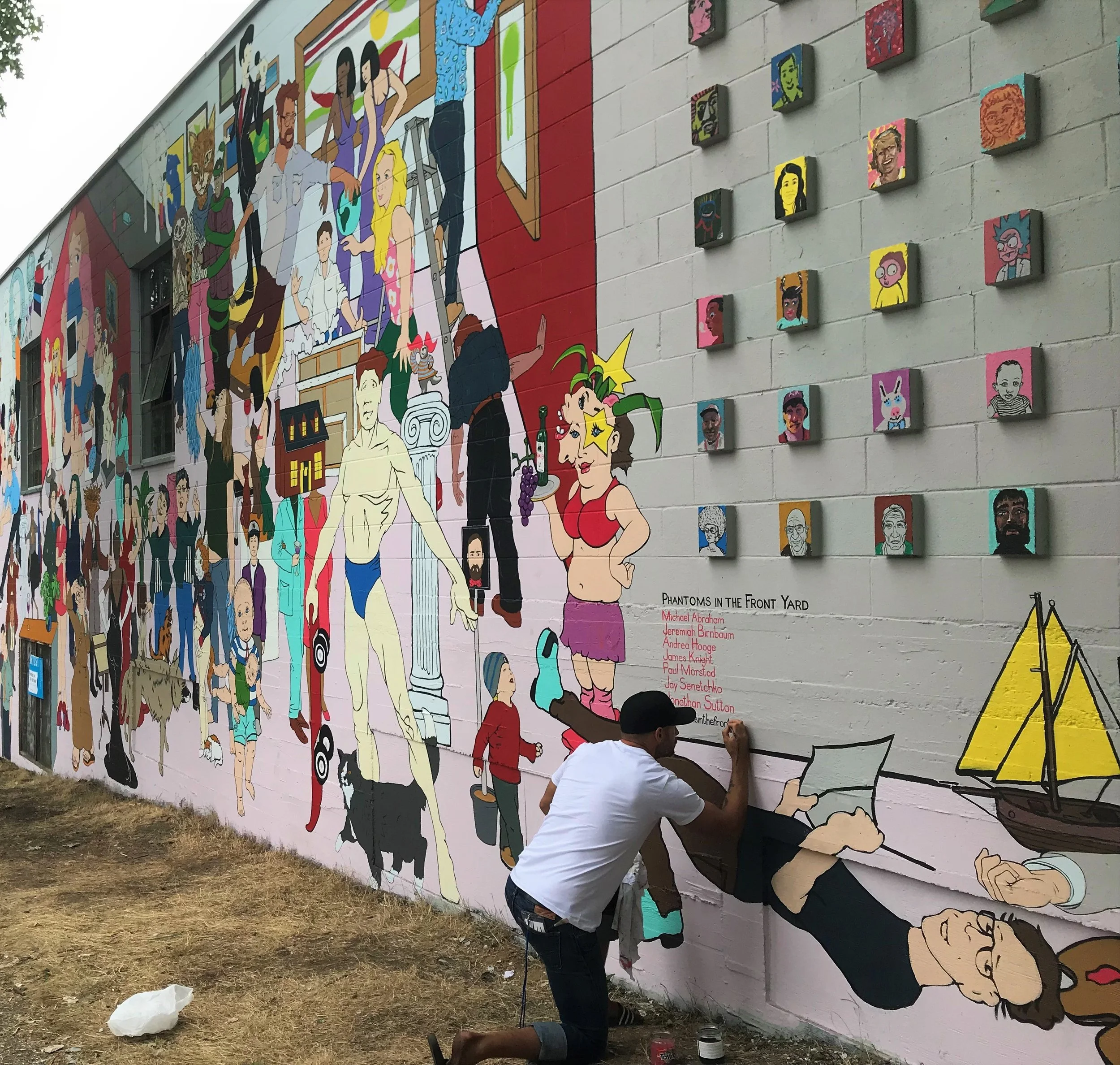 Phantoms in the Front Yard mural, curated by Pennylane Shen, Vancouver Mural Festival 2018